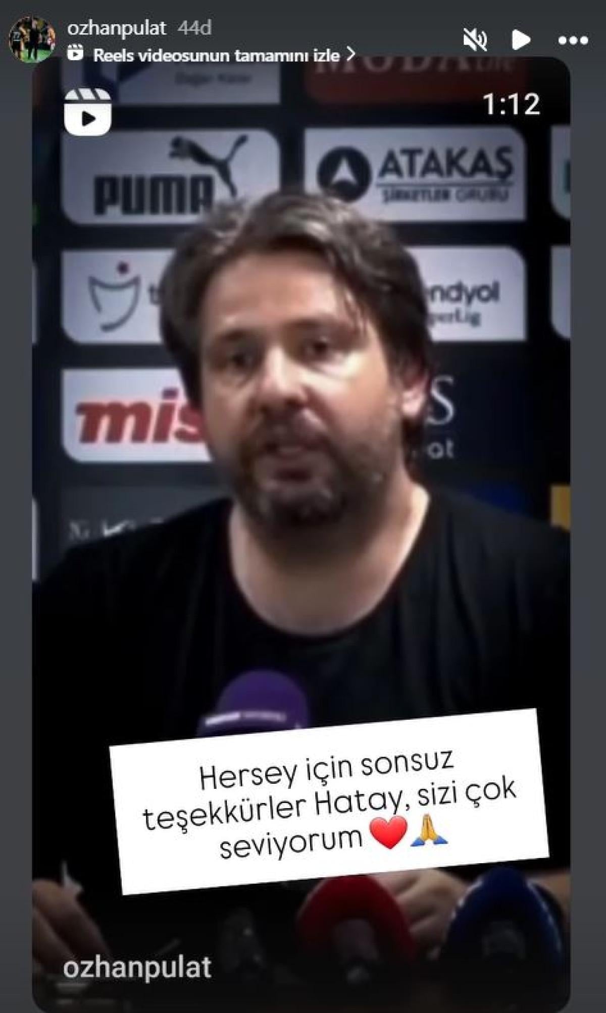 Süper Lig ekibi Hatayspor'la yollarını ayıran teknik direktör Özhan Pulat, Hatayspor'a veda etti.