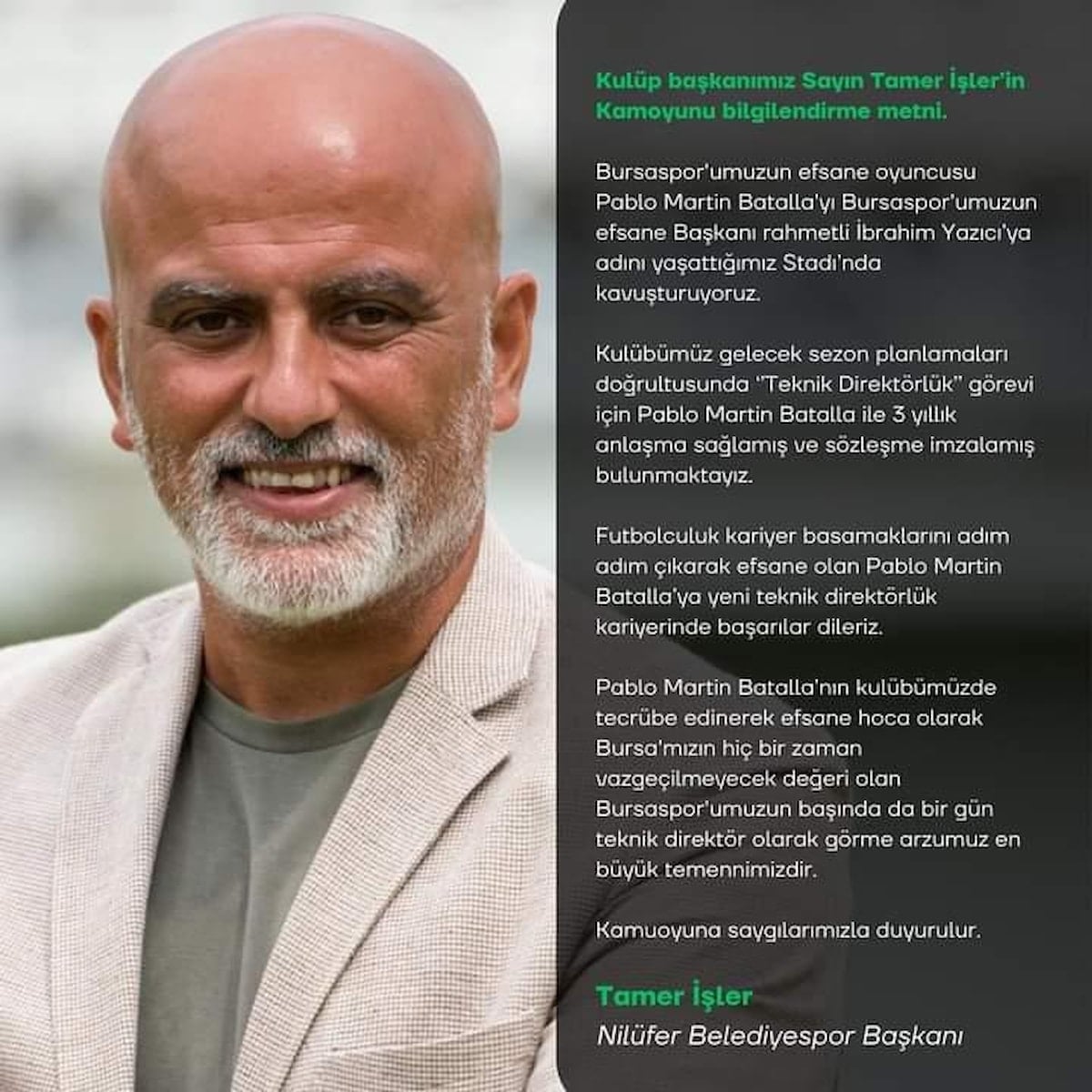 Bursaspor ile yaşadığı şampiyonlukla beraber şehirde efsane haline gelen Battala'nın heykeli 2021'de kulüp tesisinin önüne dikilmişti.