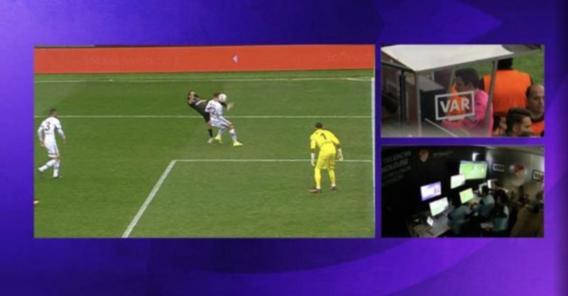 VAR'da bulunan Abdülkadir Bitigen, Halil Umut Meler'i uyardı. Monitörden pozisyonu izleyen Meler, penaltı kararından vazgeçti.