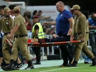 Hırvat futbolcu, saha kenarına sedye ile alınırken sağlık durumu yapılacak kontrollerin ardından belli olacak.