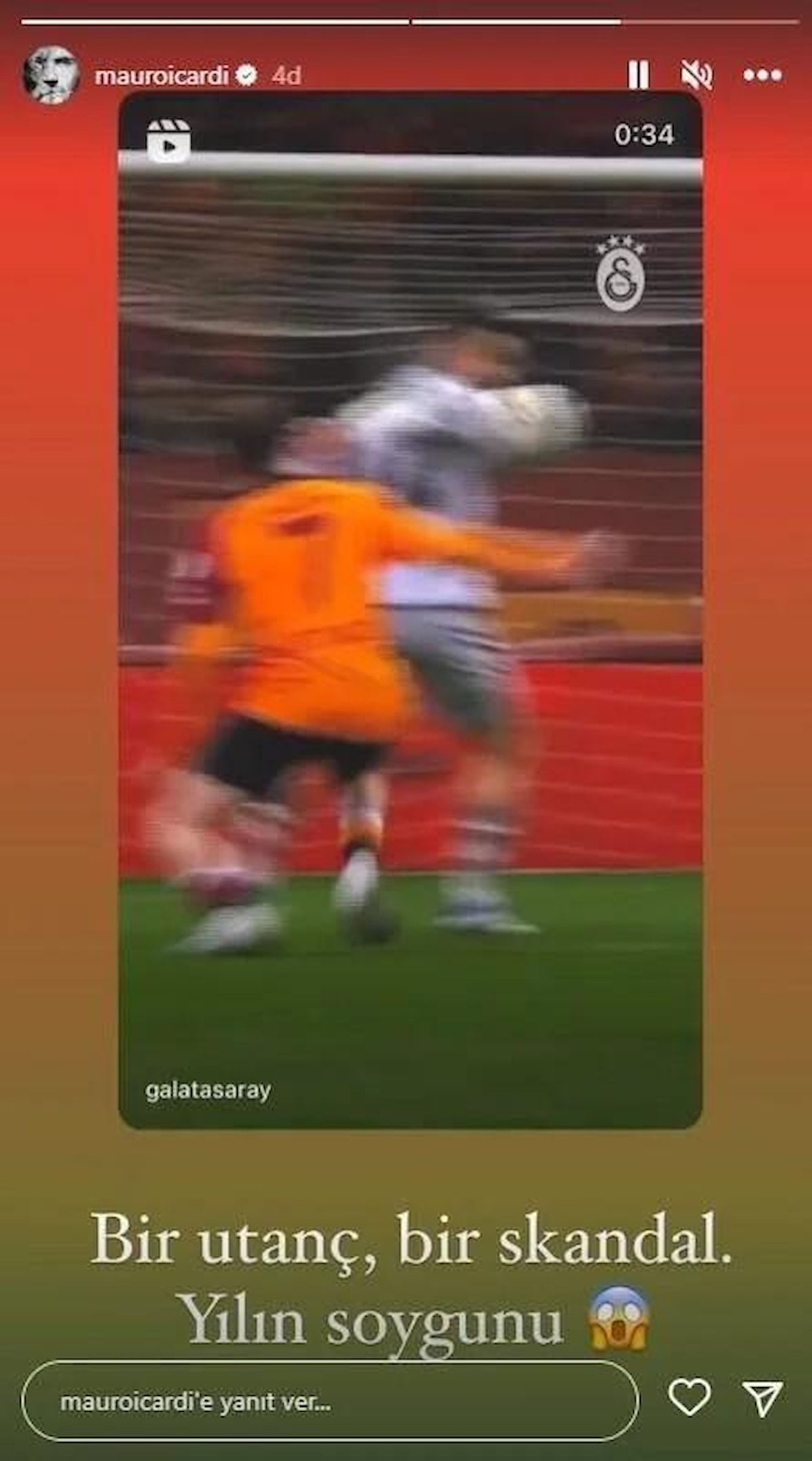 "GALATASARAY A.Ş. sporcusu MAURO EMANUEL ICARDI'nin, müsabaka sonrası sosyal medya hesabından yapmış olduğu paylaşımda yer alan Hakem Ve Diğer Müsabaka Görevlileri Hakkında Açıklamalar nedeniyle FDT'nin 38/2. maddesi uyarınca ve FDT'nin 13. maddesinin uygulanması suretiyle 150.000.-TL PARA CEZASI ile cezalandırılmasına karar verilmiştir"