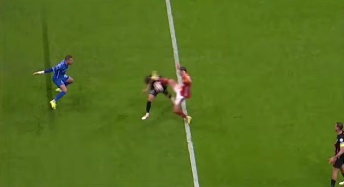 Gençlerbirliği arşılaşmanın son anlarında ceza sahası içinde Roland Sallai'nin, Zan Zuzek'e yaptığı hareket sonrasında hakem Ozan Ergün, VAR'ın uyarısıyla kenara geldi.
