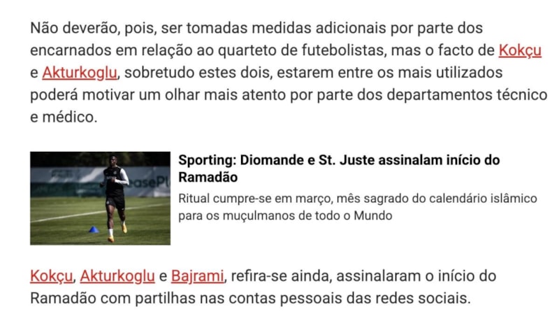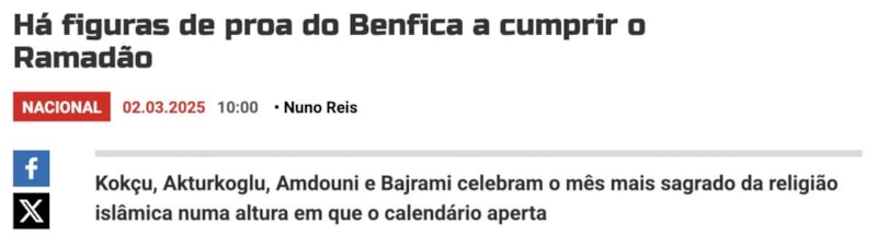 Portekiz'in önde gelen spor gazetelerinden A Bola, Benfica'dan Orkun Kökçü, Kerem Aktürkoğlu, Zeki Amdouni ve Adrian Bajrami'nin oruç tutacak olmasını gündeme taşıdı.