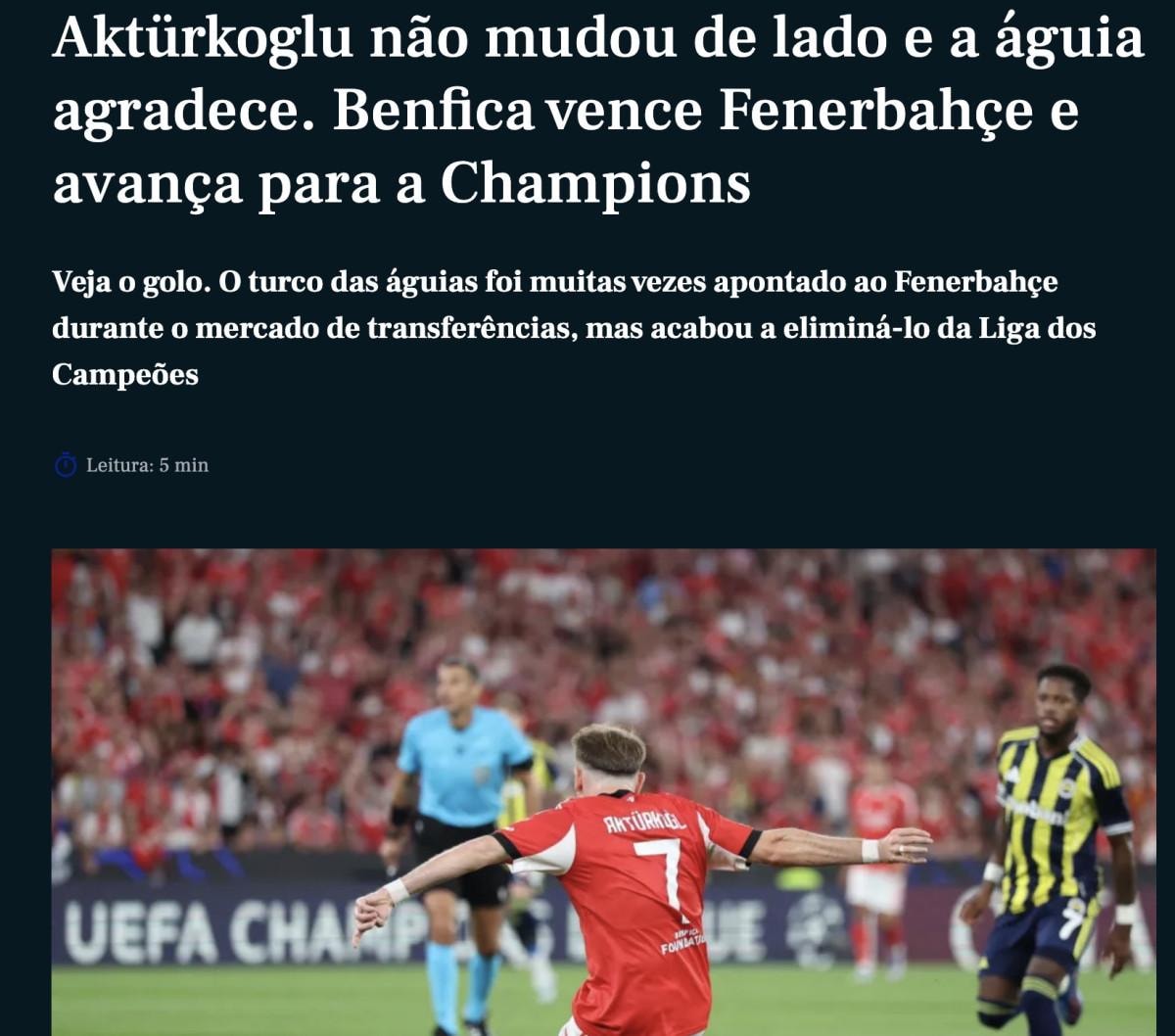 Ülke basını, Benfica’ya turu kazandıran golü atan Kerem Aktürkoğlu’nu öne çıkardı.