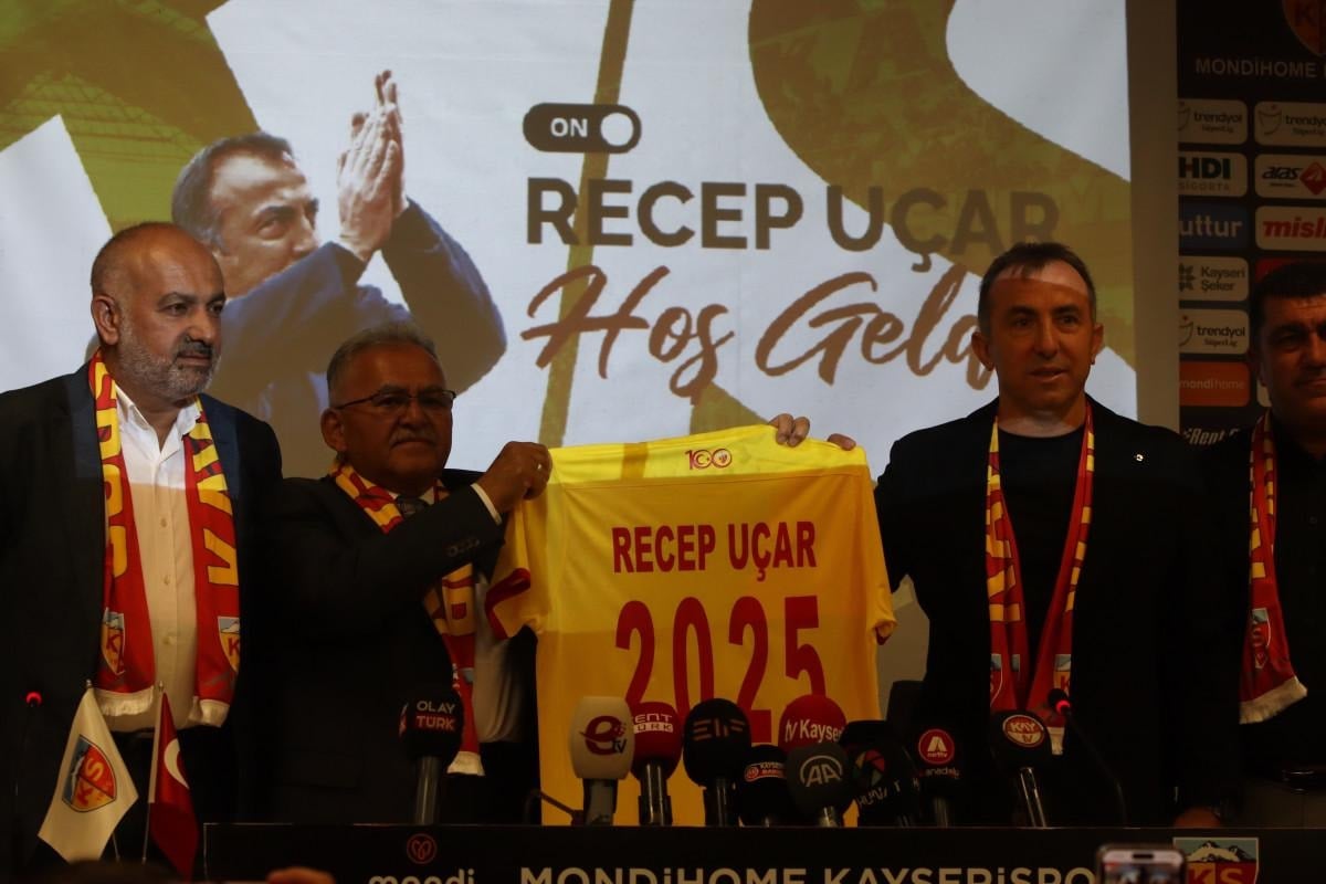 Kayserispor'un yeni teknik direktörü Recep Uçar için Kadir Has Stadı'nda, Kayseri Büyükşehir Belediye Başkanı Memduh Büyükkılıç ve Başkan Ali Çamlı'nın da katılımıyla imza töreni düzenlendi.