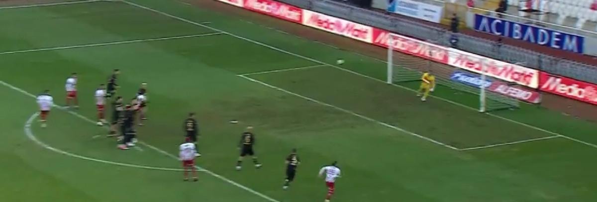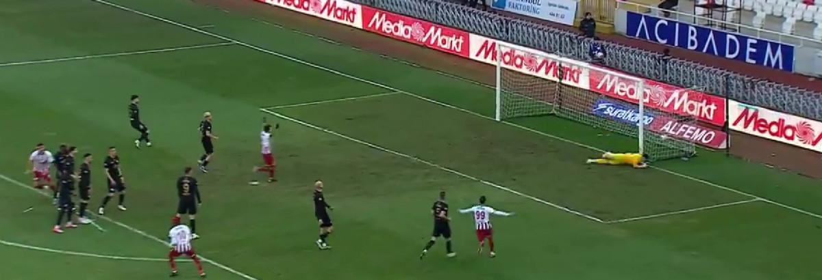 Maçın 30. dakikasında Sivasspor'un yayın birkaç metre gerisinden kazandığı serbest vuruşta topun başına geçen Manaj, sağ ayağının üst içiyle sağ köşeye düzgün vurdu, meşin yuvarlak filelerle buluştu.