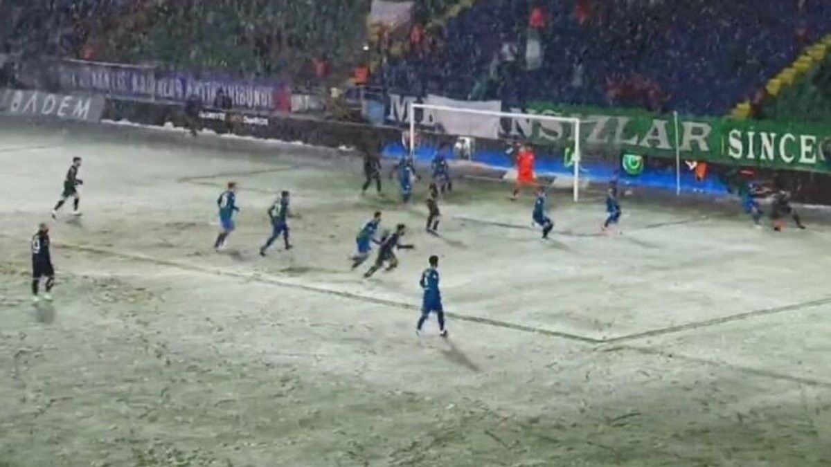 Rizespor-Antalyaspor maçı, 23. dakikada yoğun kar yağışı sebebiyle durdu.