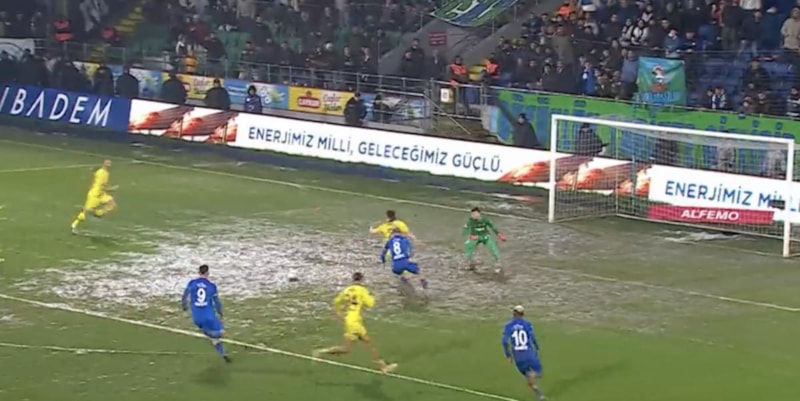 Fenerbahçe'nin Rizespor'u 3-1 yendiği Süper Lig maçın son dakikalarında Karadeniz ekibinin atağında topun çamura saplanması mücadelenin kırılma anlarından biri olarak kayıtlara geçti.