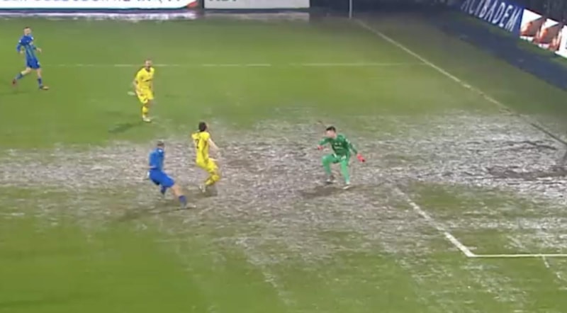 Yoğun bir yağmur yağışı altında oynanan müsabakada elverişsiz saha koşulları birçok pozisyonda iki takımın da oyuncularını bir hayli zorlarken müsabakanın ikinci yarısında enteresan bir an yaşandı.