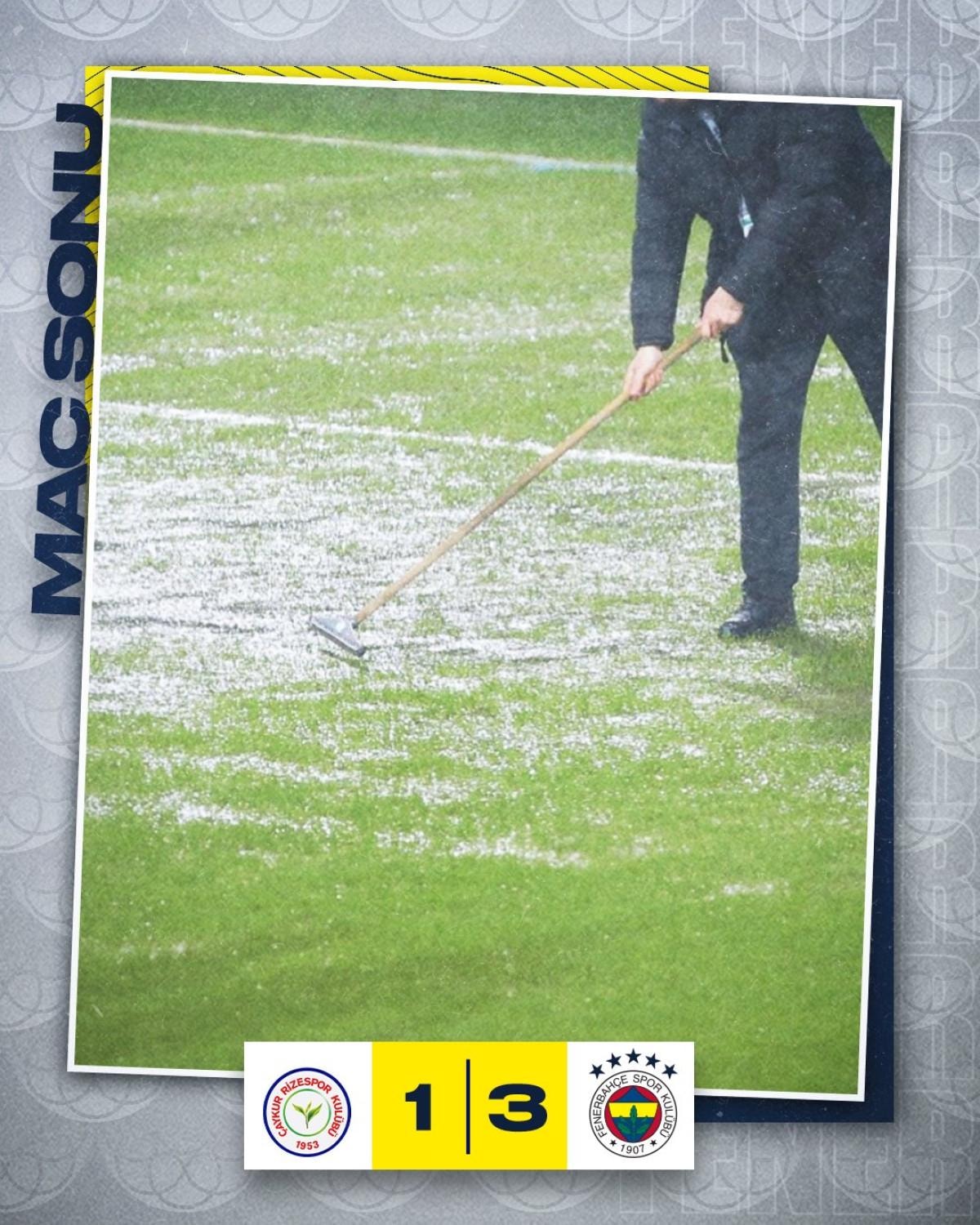 Sarı-lacivertliler, sosyal medyada paylaştığı maç sonu görselinde stadyumun zeminini paylaşarak ''Rize'den 3 puanla ayrılıyoruz'' ifadeleri kullanıldı.