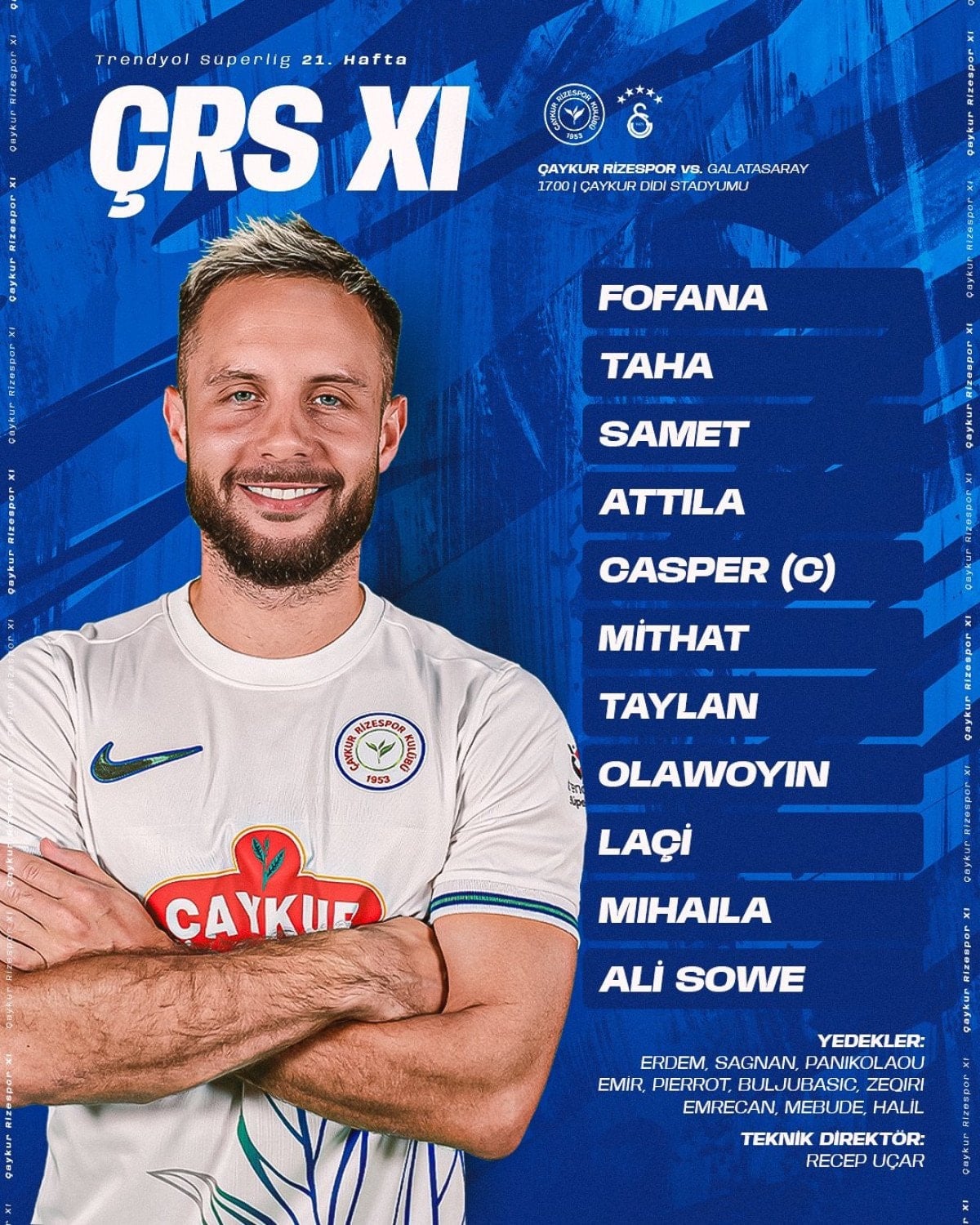 - Galatasaray, Süper Lig 21. haftasında Rizespor ile deplasmanda karşılaşıyor.