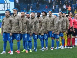 Karşılaşmada, maç öncesi Rizespor teknik heyeti ve futbolcular sahaya, askeri kamuflajla çıktı.