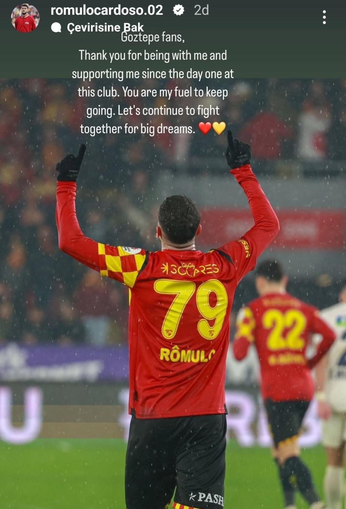 Rômulo da sarı-kırmızılı taraftarlara yönelik sosyal medya hesabından paylaşım yaptı.