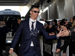 Juventus-Cagliari maçı için stada gelen Portekizli yıldız, yeni saç stili ve ilginç gözlüğüyle dikkat çekti.