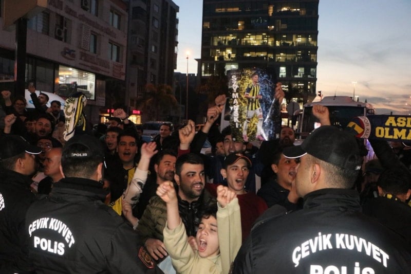 Sarı-lacivertli taraftarlar otel önünde kafileyi karşılayarak tezahüratlarda bulundu.