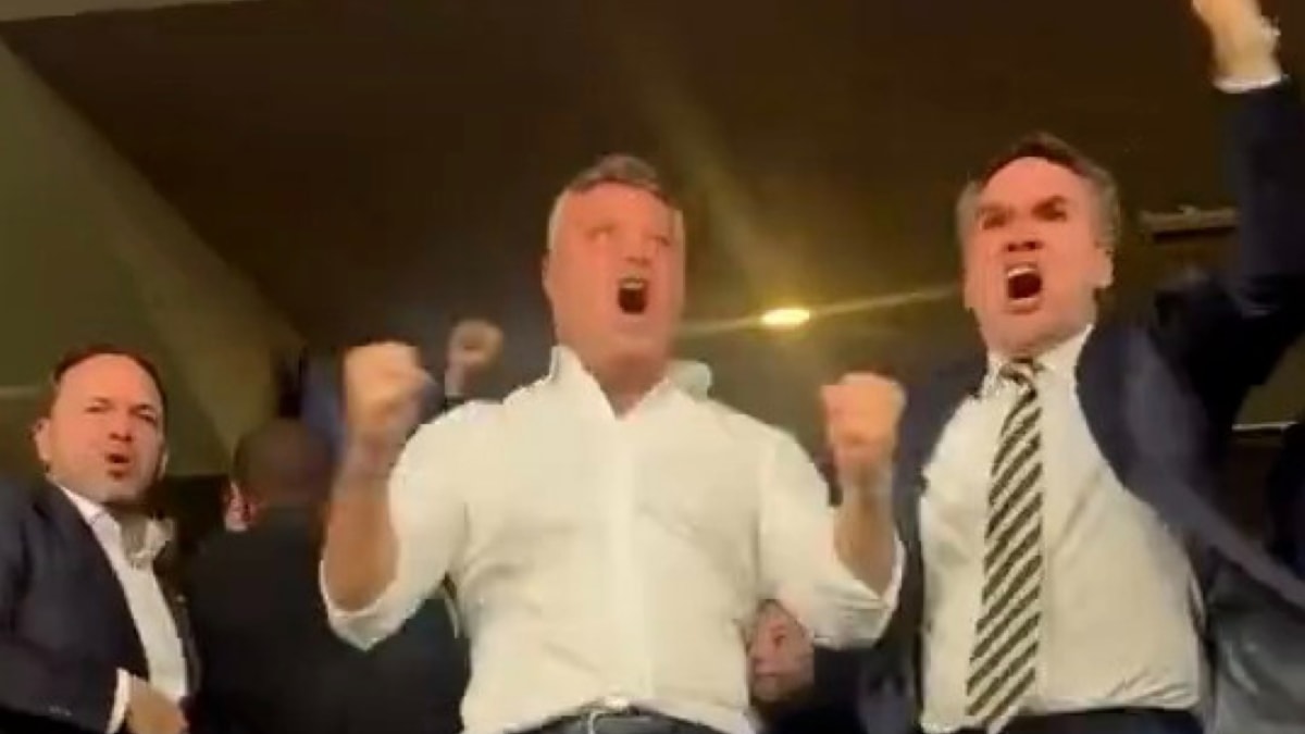Saran'ın ayağa kalkıp yumruklarını havaya kaldırdığı, çevresindekilerle sarılıp coşkuyla kutlama yaptığı görüntüler kameralara yansıdı.