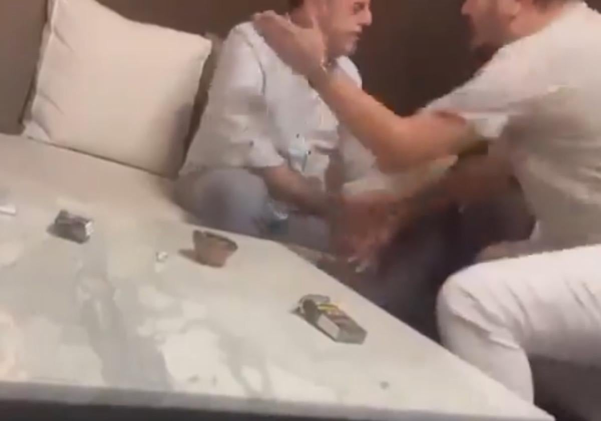 Sakaryaspor Başkanı Gökhan İn'in, alacak verecek anlaşmazlığı nedeniyle çıktığı öne sürülen bir tartışma sırasında darbedildiği anlar telefon kamerasına yansıdı.