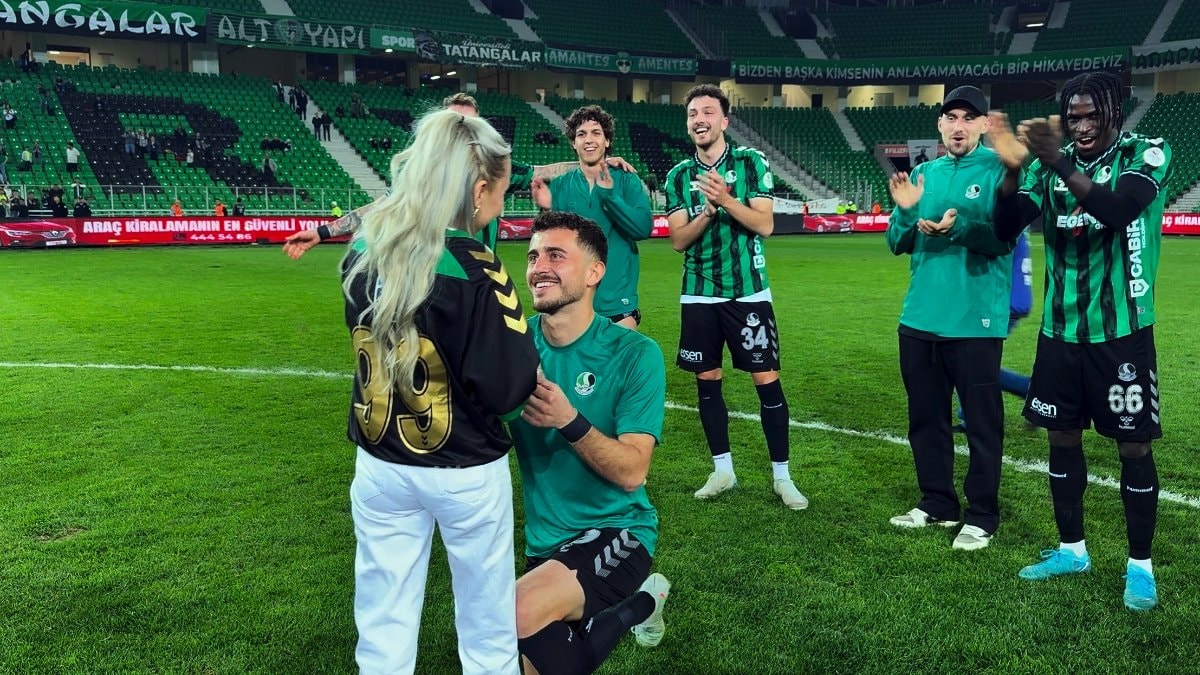 1. Lig'in 30 haftasında Sakaryaspor’un sahasında Yeni Malatyaspor'u 5-0 mağlup ettiği maçın ardından sahada, sürpriz bir evlilik teklifi gerçekleşti.