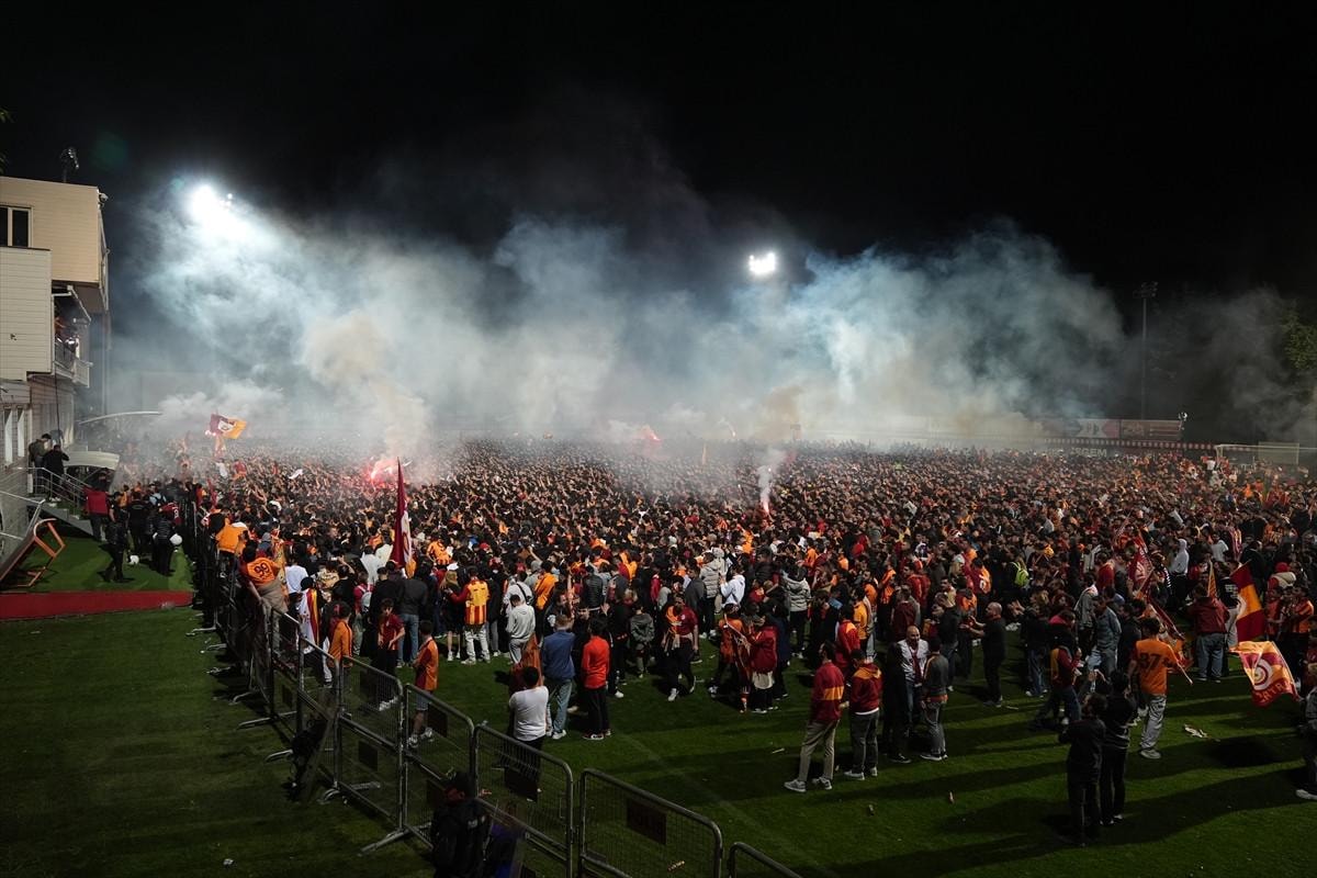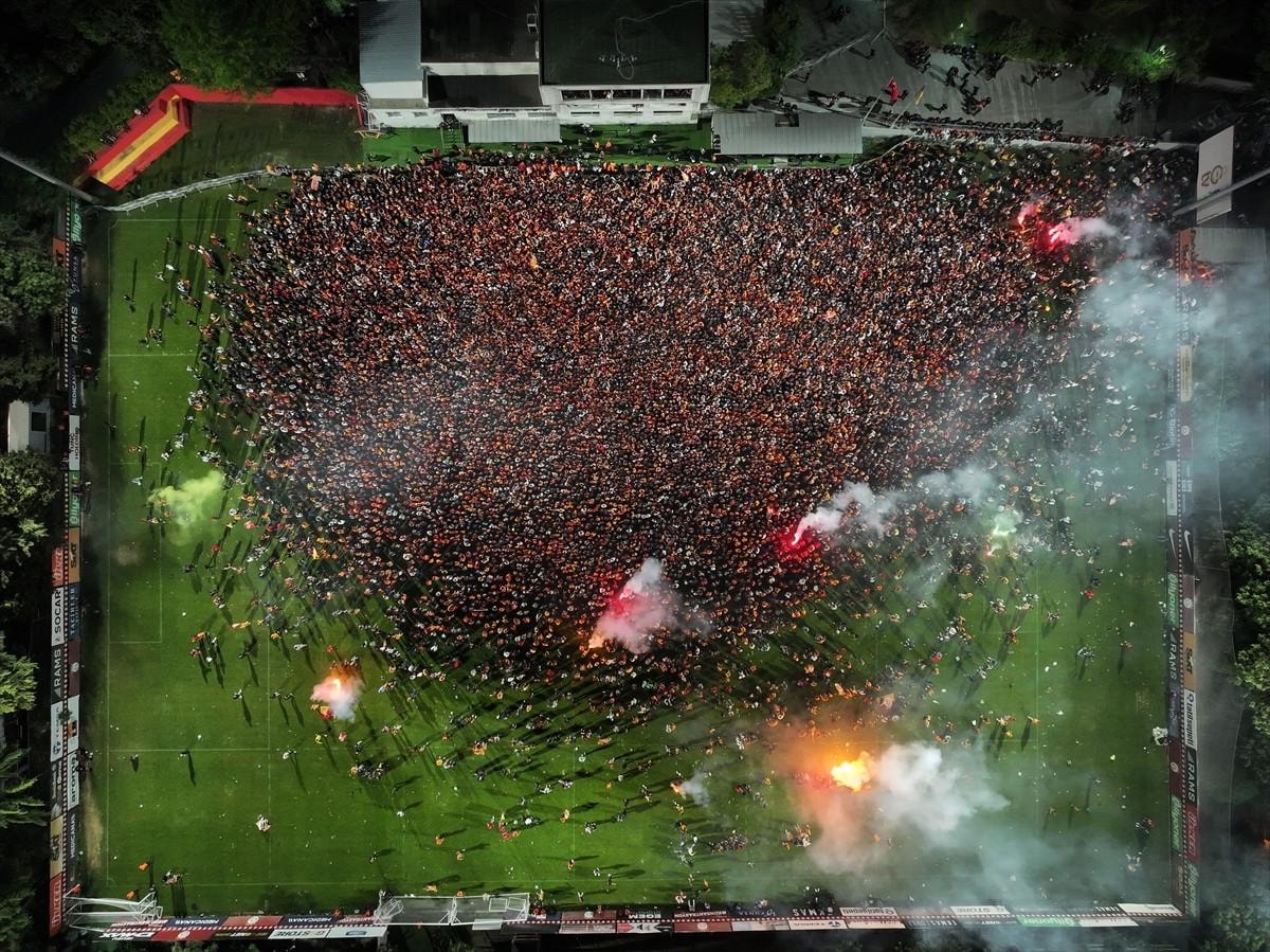 Sayıları her geçen dakika artan taraftarlar, tesis çevresindeki sokakları doldurdu. Uzun süre tesis dışında bekleyen taraftarlar, ilerleyen saatlerde içeri alındı. A takımın antrenman yaptığı sahaya alınan taraftarlar, kutlamalarını burada sürdürdü.