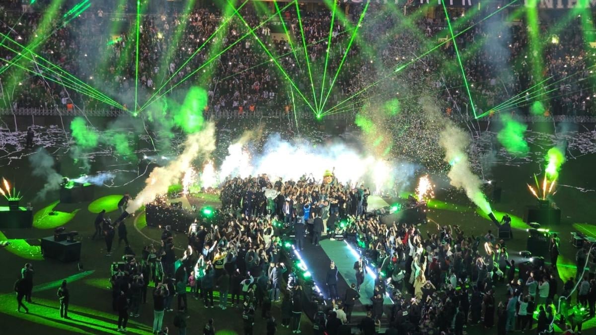 Konuşmaların ardından önce yöneticiler, ardından futbolcular ve teknik ekip tek tek davet edilerek sahanın ortasına kurulan platforma çıktı.