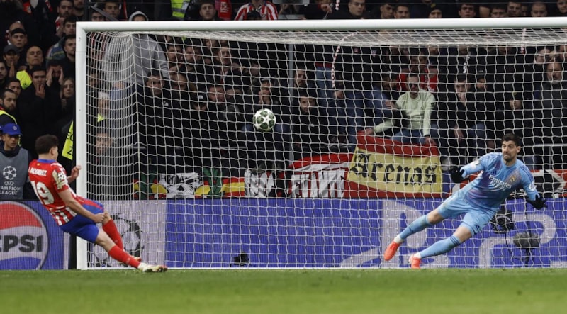 Atletico Madrid'in ikinci penaltısında topun başına geçen Julian Alvarez, ayağının kaymasına rağmen ağları havalandırdı.
