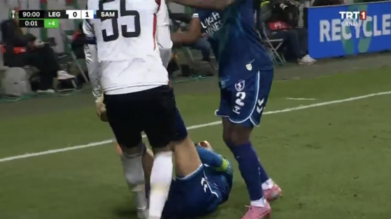 Maçın son saniyelerinde sakatlanan ve acıyla kendini yere bırakan Zeki Yavru'yu Legia'nın kaptanı 37 yaşındaki stoper Artur Jedrzejczyk, bacaklarından tutarak sürüklemeye ve dışarı taşımaya çalıştı.