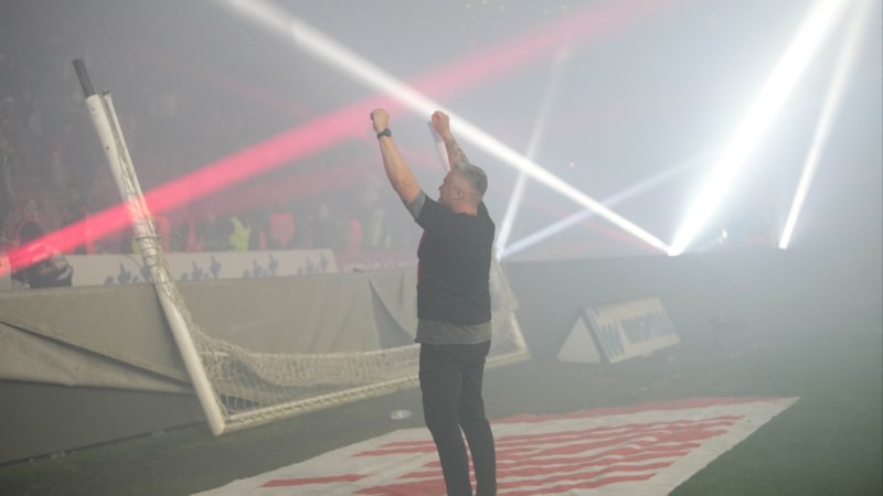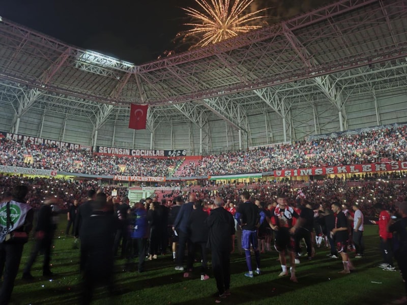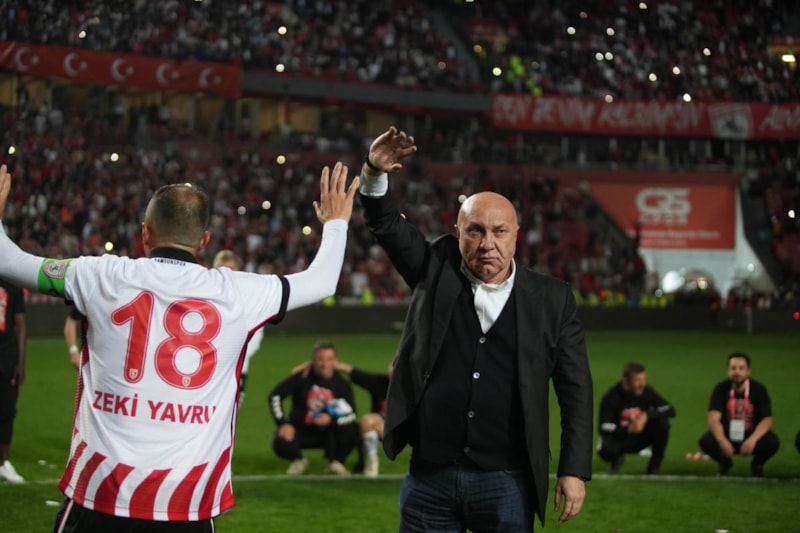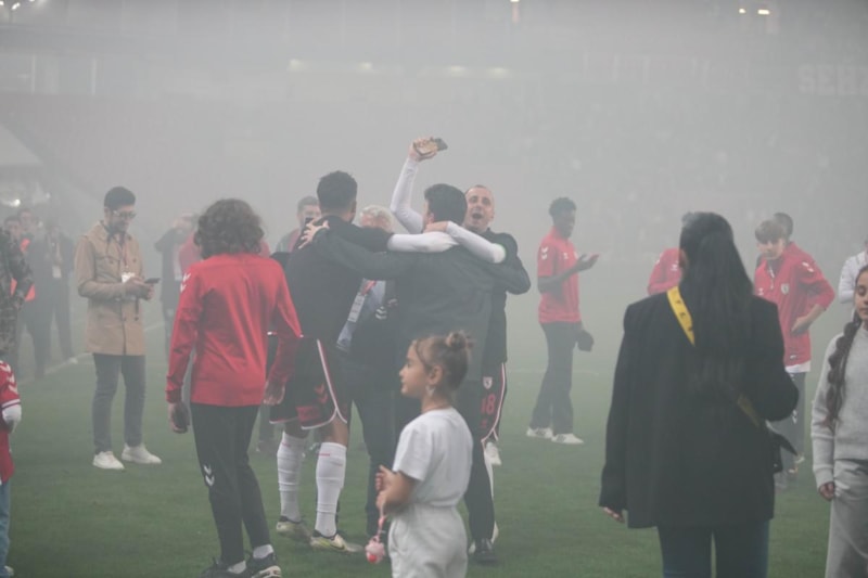 Bitiş düdüğüyle birlikte kırmızı-beyazlı futbolcular, teknik heyet ve kulüp yöneticileri, taraftarlarıyla birlikte unutulmaz bir sevinç yaşadı.