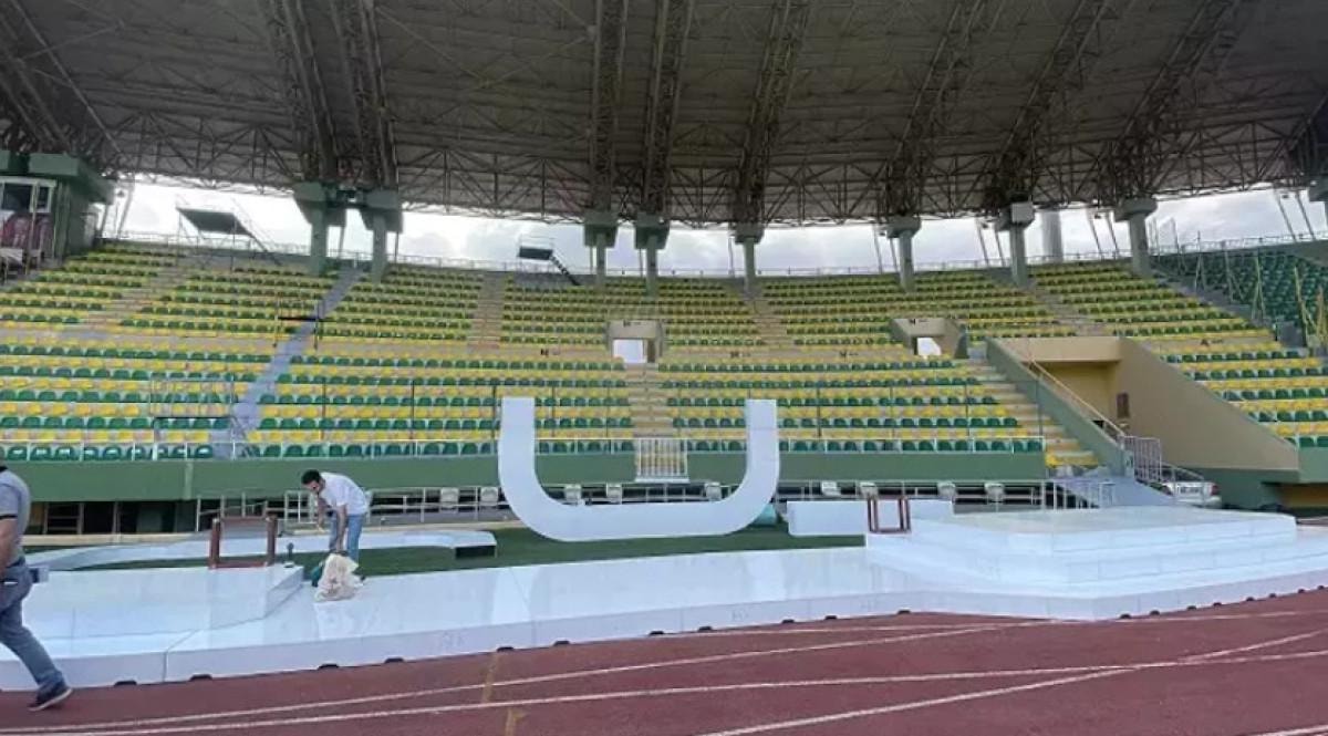 Tribün ve seyirci koltukları onarılarak, şampiyonluk platformunun kurulum hazırlıklarının sonuna gelindi.