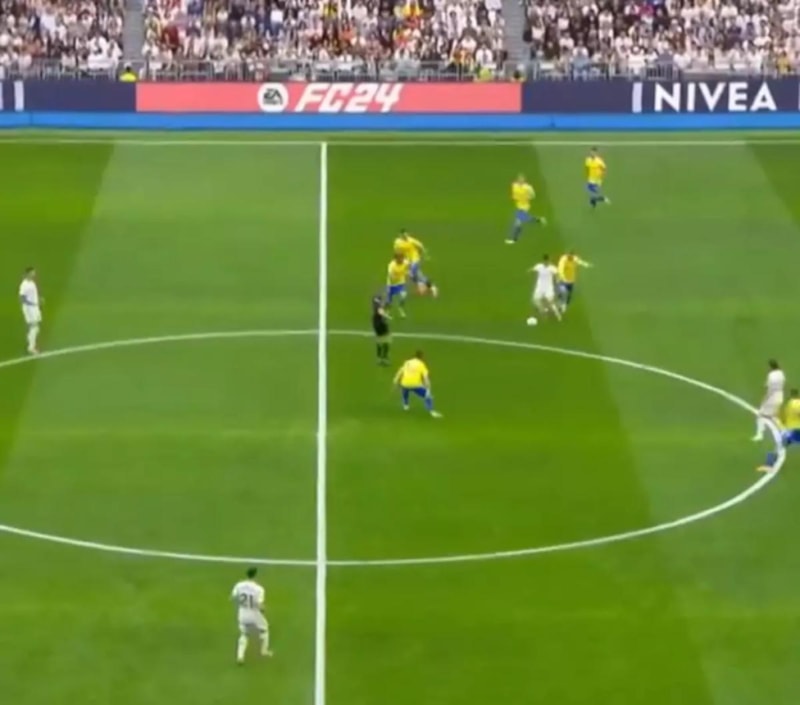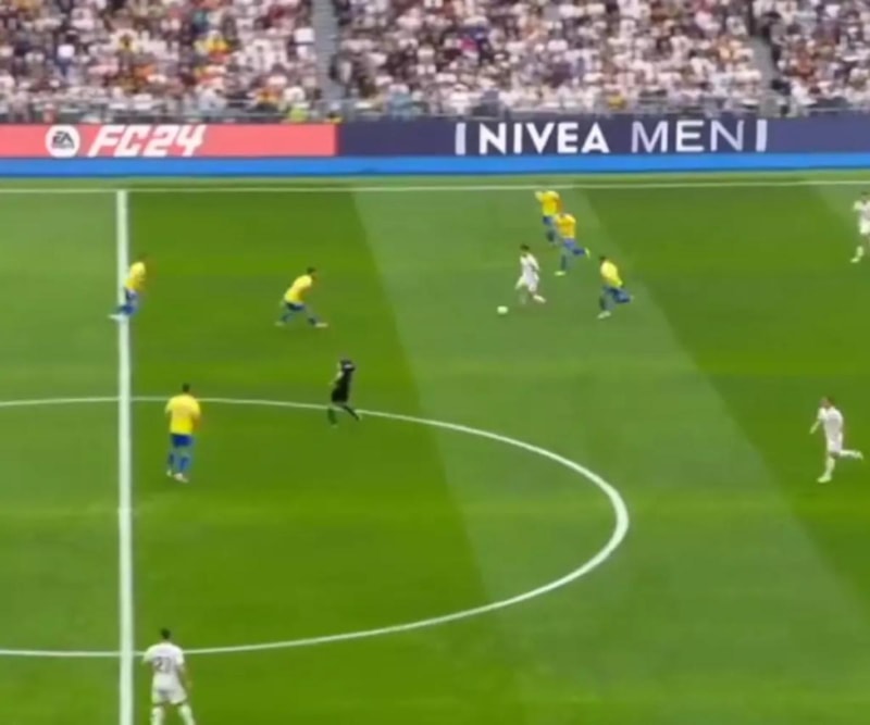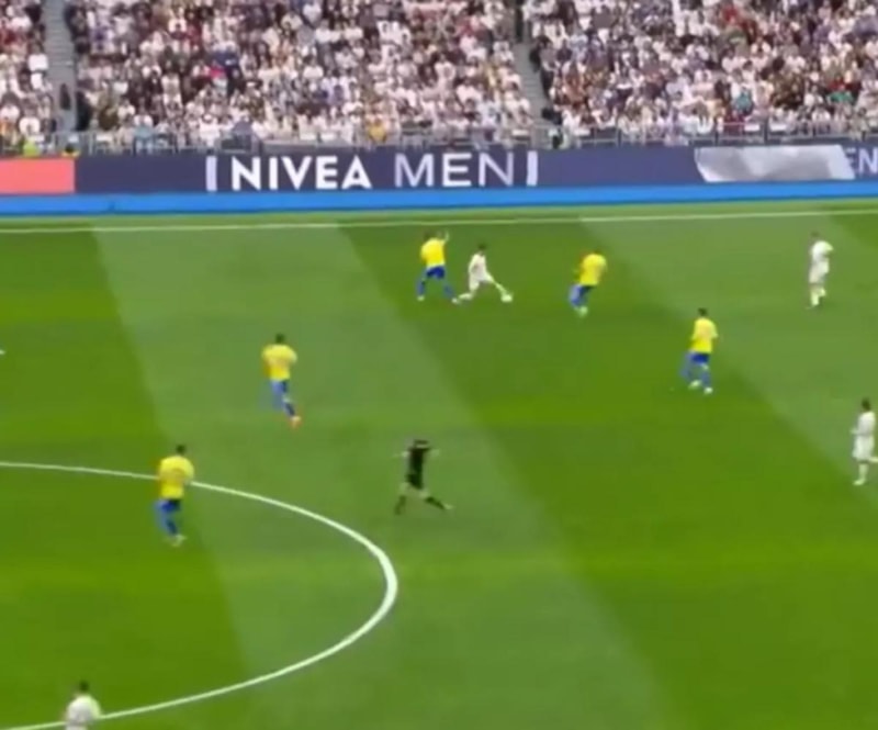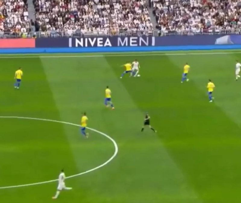 Karşılaşmanın 20. dakikasında bu kez sağ tarafta topla buluşan milli yıldız harika bir vücut çalımıyla iki rakibini birden oyundan düşürmeyi başardı ve Santiago Bernabeu tribünlerini ayağa kaldırmayı başardı.