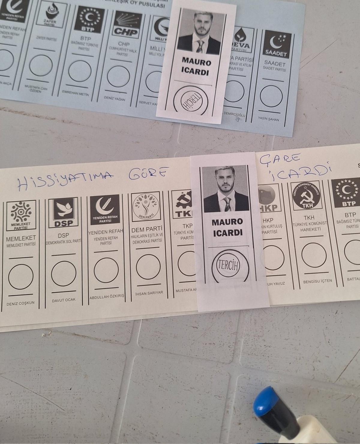 Sarı-kırmızılı futbolsever, seçim kağıdına "Hissiyatıma göre Çare Icardi" yazdı.