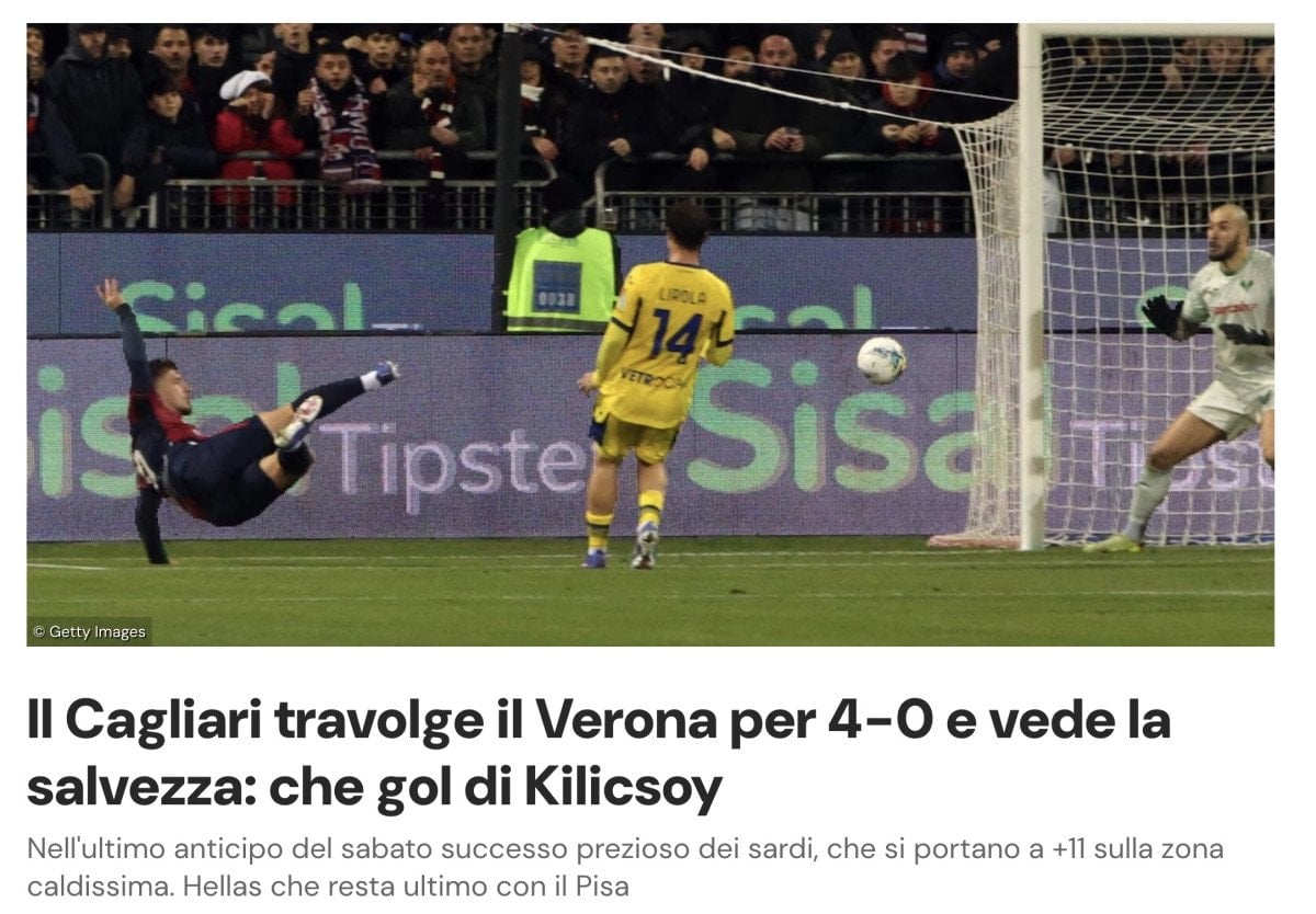 - Cagliari, Serie A'da Verona'yı 4-0 mağlup etti ve Semih Kılıçsoy'un röveşata golü İtalyan basınında büyük ses getirdi.