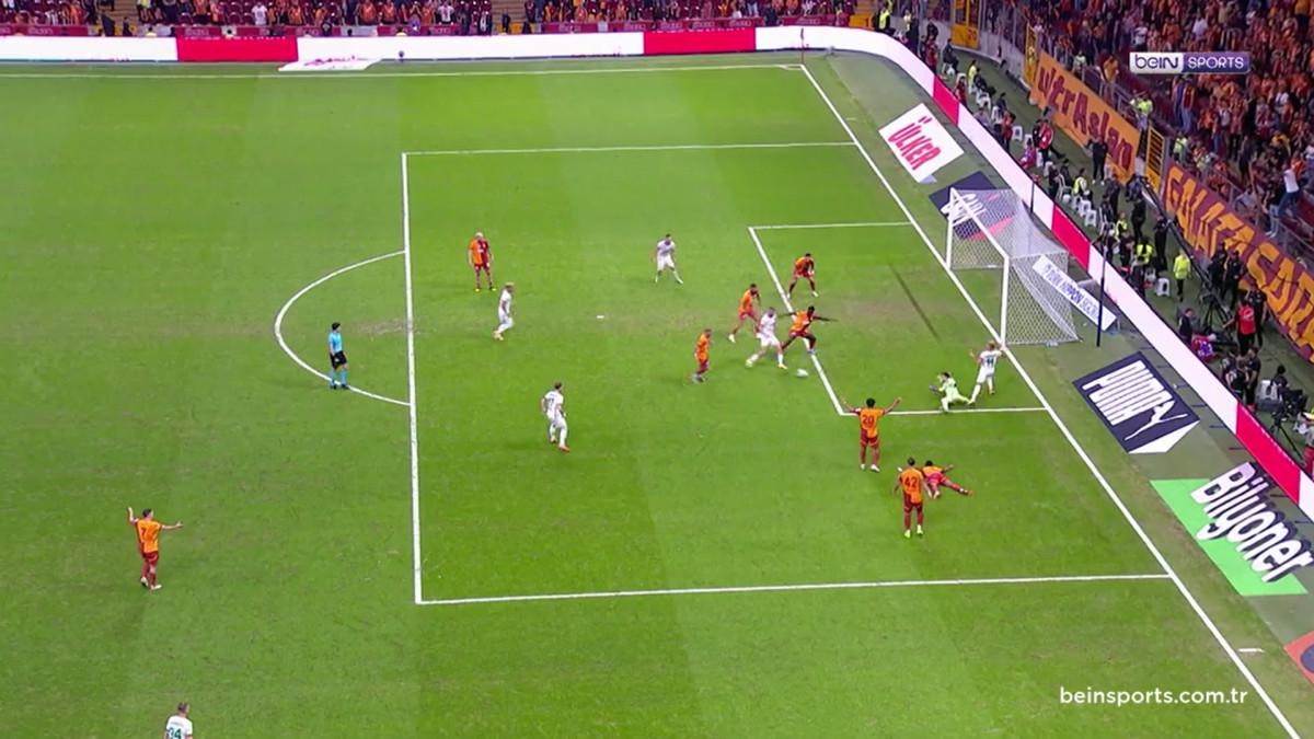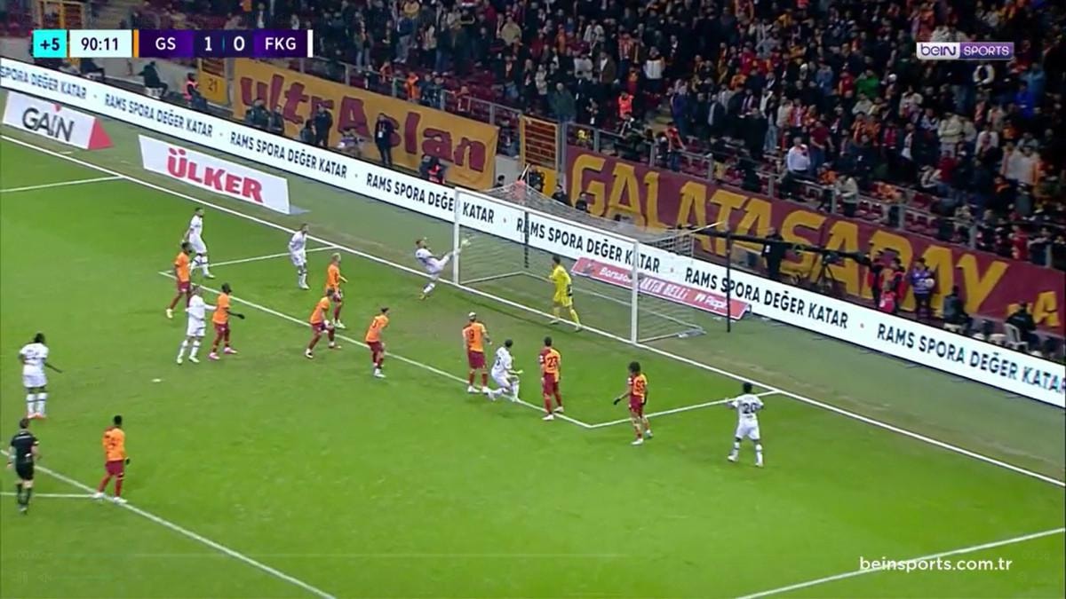 Dursun, müsait pozisyonda Muslera'nın kalesini terk ettiği pozisyonda topu dışarı attı.
