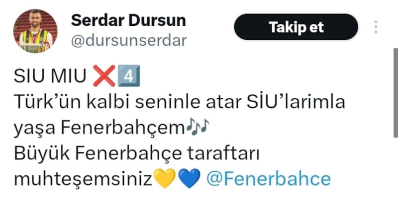 Türk’ün kalbi seninle atar SİU’larimla yaşa Fenerbahçem.