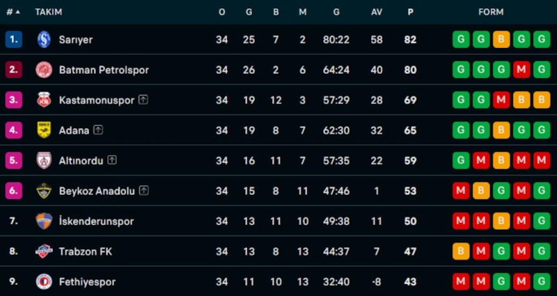 Türkiye 2. Lig Beyaz Grup 34. ve son hafta maçında İskenderunspor ile Sarıyer karşı karşıya geldi.