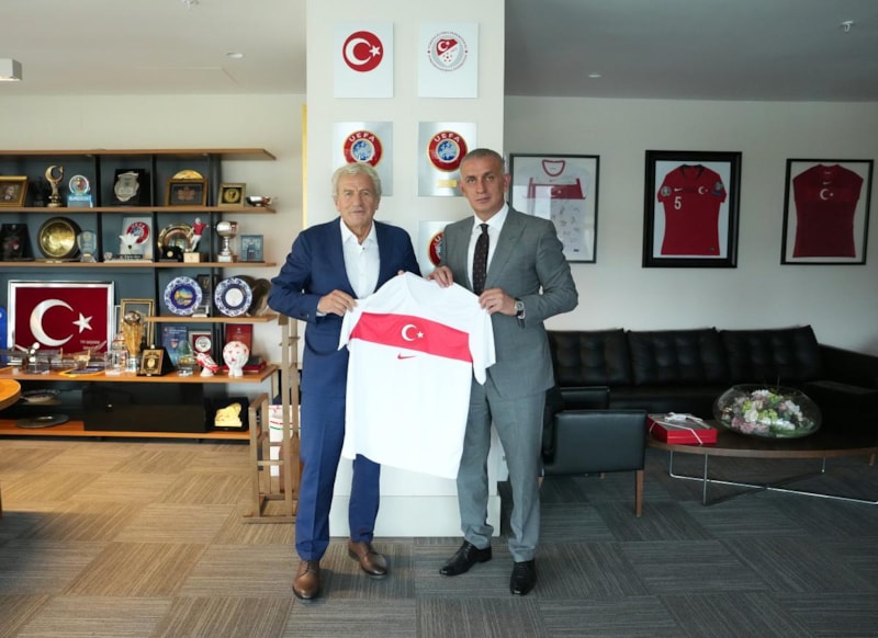 Türkiye Futbol Federasyonu (TFF) Başkanı İbrahim Hacıosmanoğlu, TFF'nin eski başkanı Servet Yardımcı tarafından ziyaret edildi.