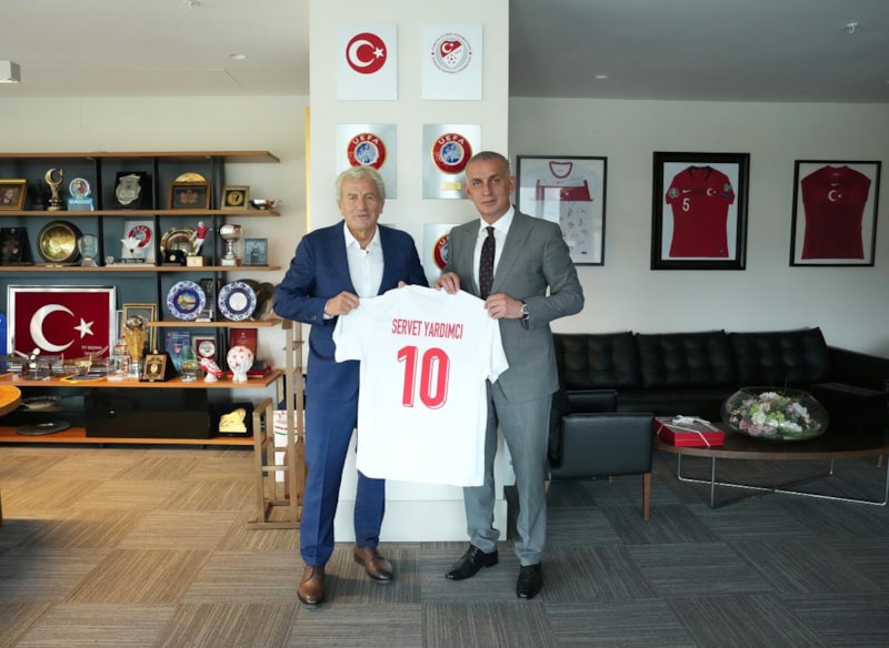 Hacıosmanoğlu, Servet Yardımcı'ya isminin yazılı olduğu A Milli Takım forması hediye etti.