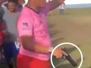 Amatör maçta elinde silahla gezen hakem - İZLE
