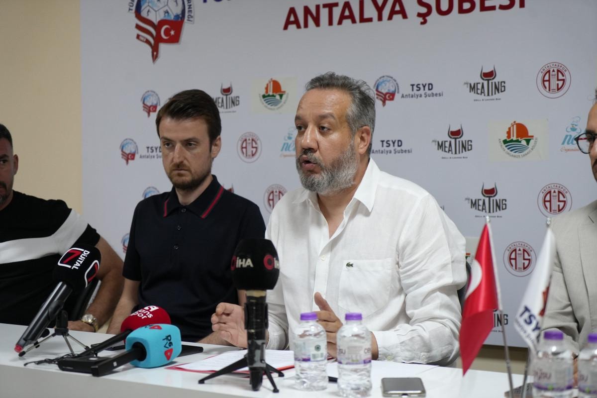 Antalyaspor A.Ş. Başkanı Sinan Boztepe, Türkiye Spor Yazarları Derneği (TSYD) Antalya Şubesi'nde düzenlenen basın toplantısında açıklamalarda bulundu.