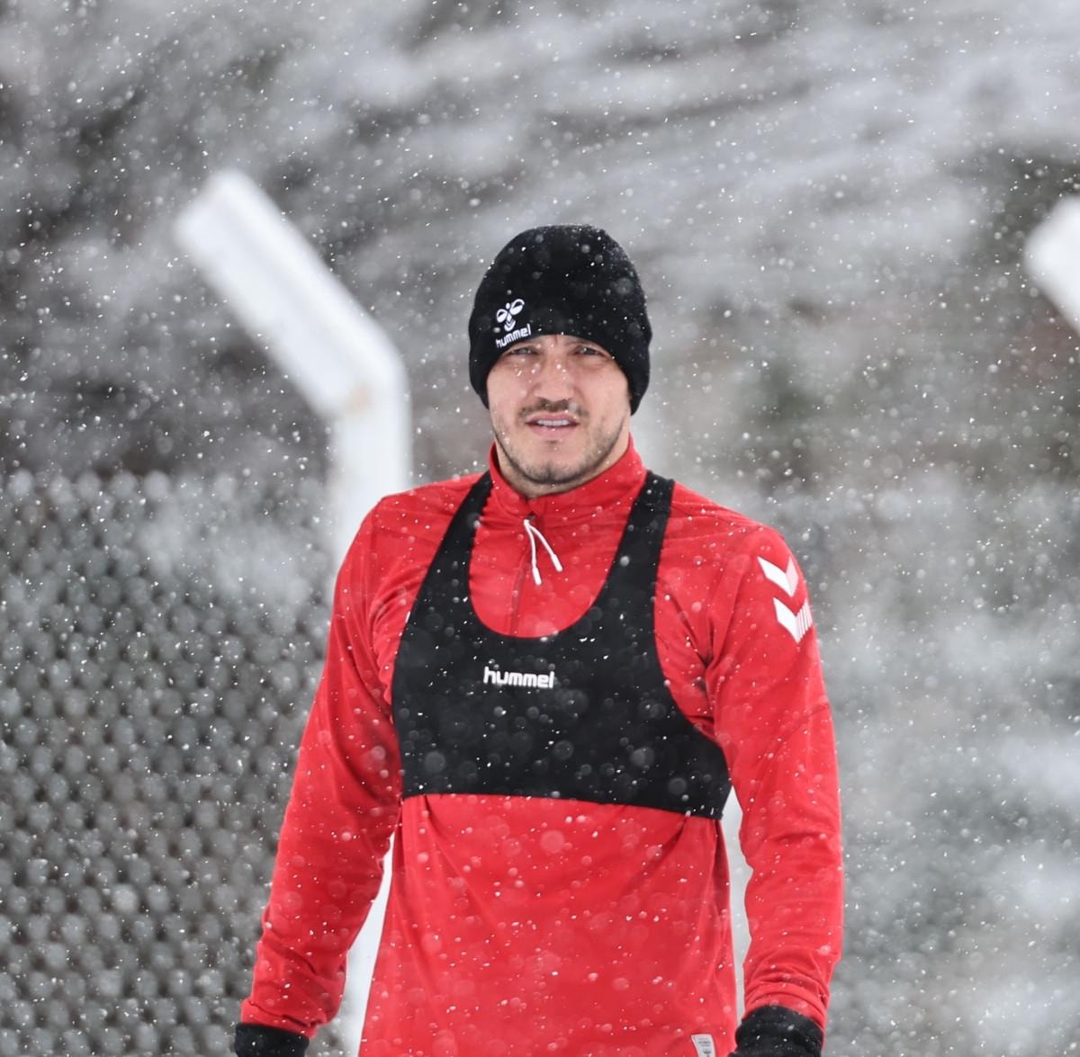 Kulüp tesislerinde yoğun kar yağışı altında Teknik Direktör Ömer Erdoğan ve yardımcıları yönetiminde gerçekleştirilen antrenman, dinamik ısınma çalışmasıyla başladı.