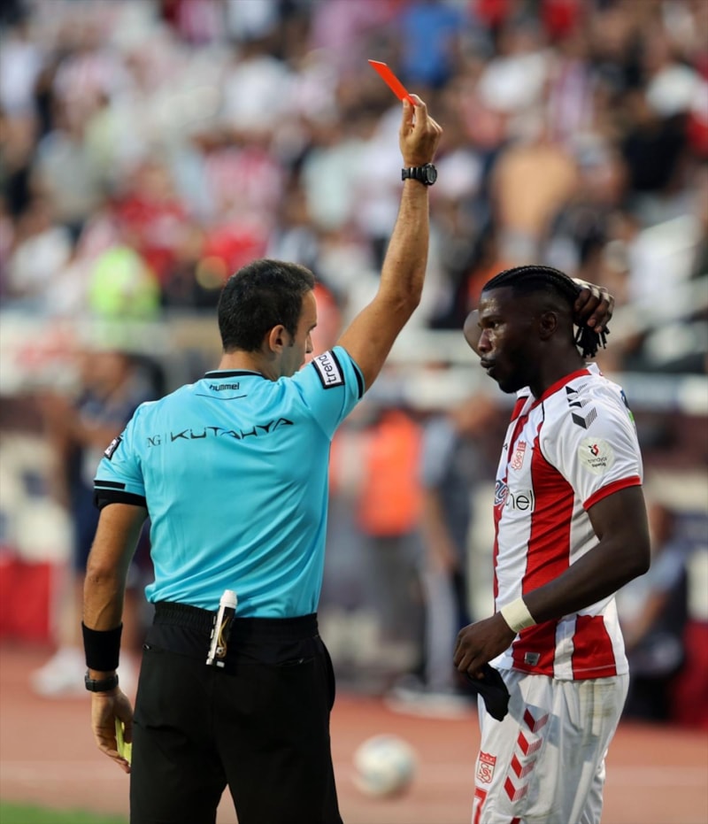 Sivasspor'da 2. golü atan Keita Balde, ikinci golde formasını çıkardığı için ikinci sarıdan kırmızı kartla oyun dışında kaldı.