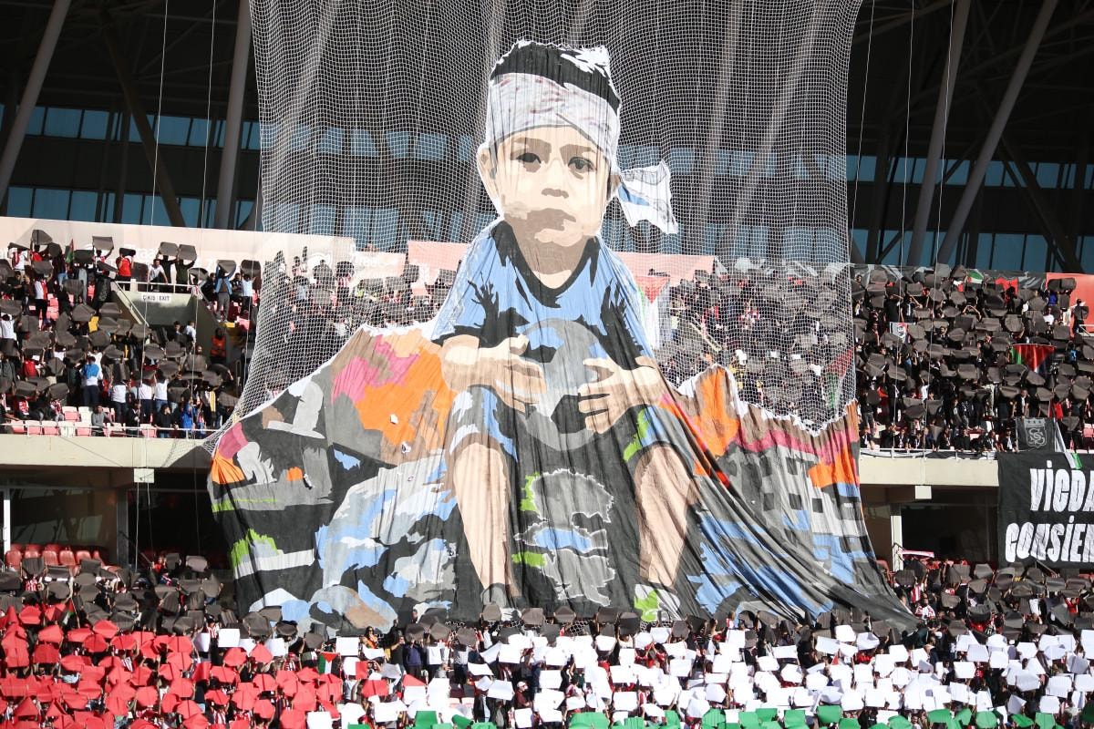 - Koreografide "Dünya: 0 - Vicdan: 0" yazısı yer aldı ve maç gelirlerinin Gazze'ye bağışlanacağı açıklandı.