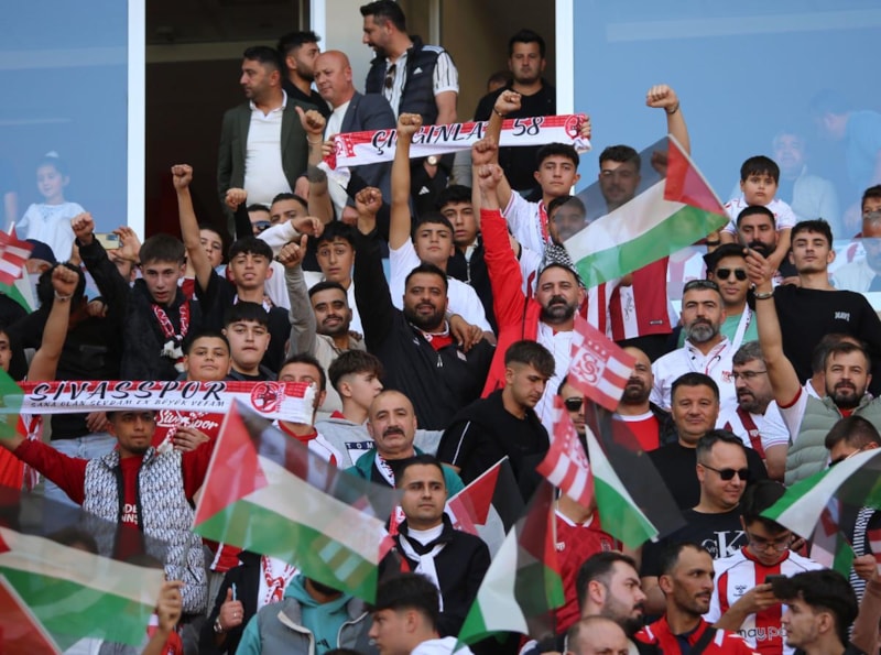 Bu anlamlı çağrıya sessiz kalmayan taraftarlar, 27 bin 532 kişilik Sivas 4 Eylül Stadyumu'nu doldurarak hem takımlarına destek oldu hem de Gazze halkına yardım eli uzattı.