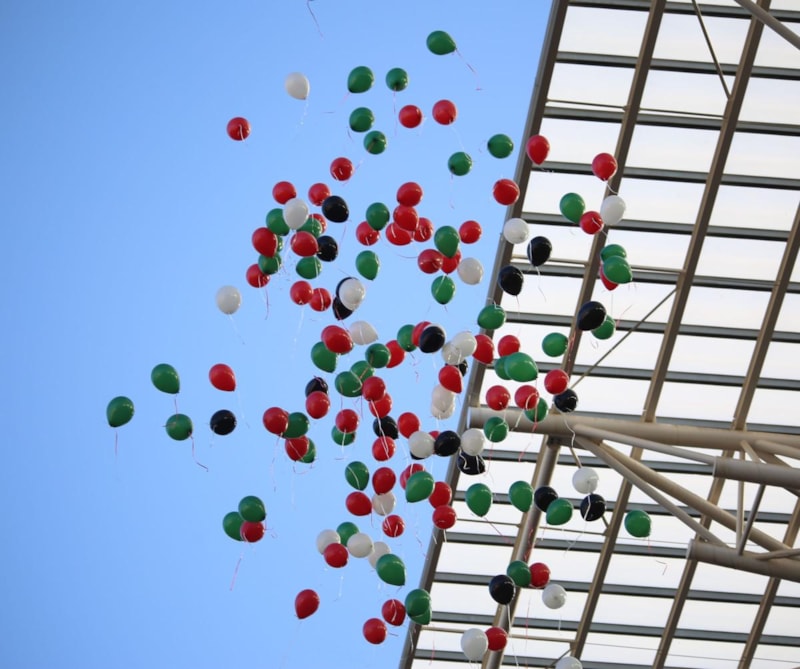 Tribünlerde Filistin'i simgeleyen balon da uçuruldu.