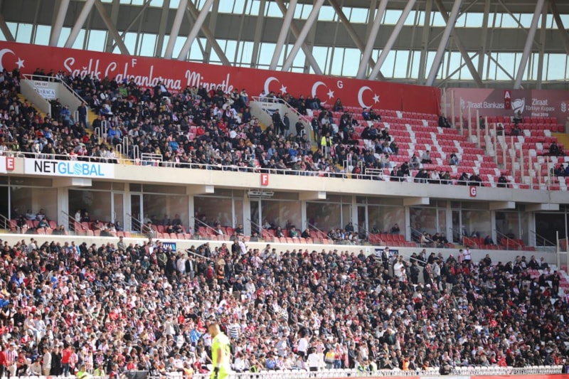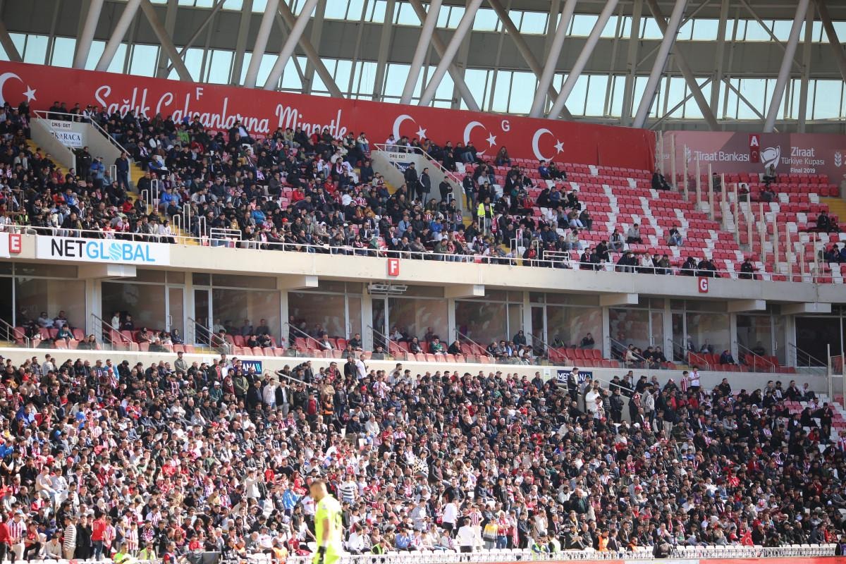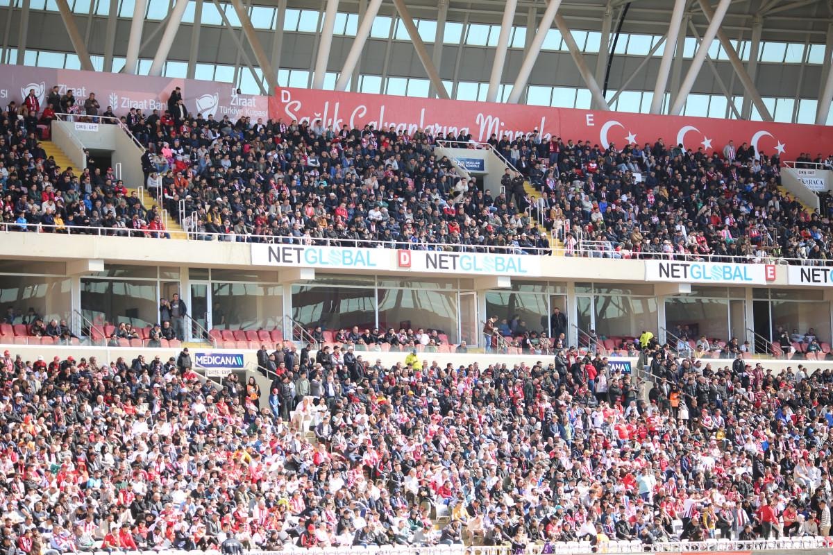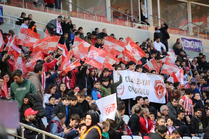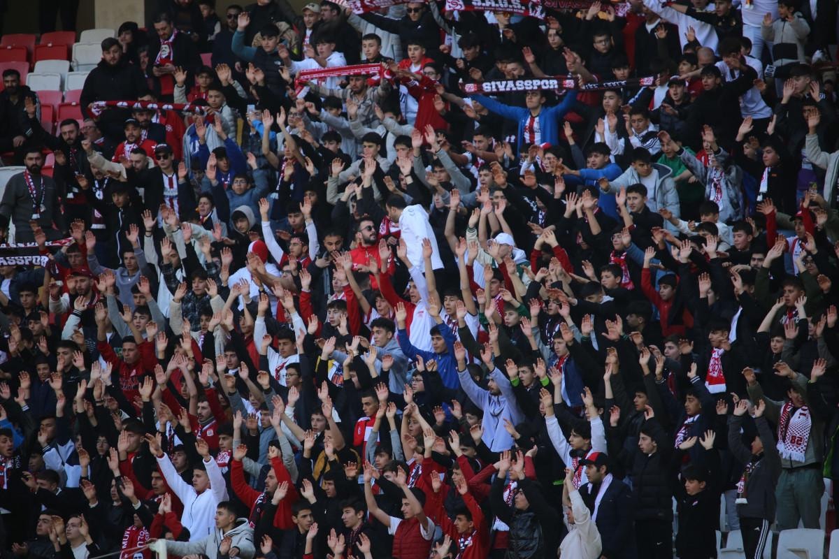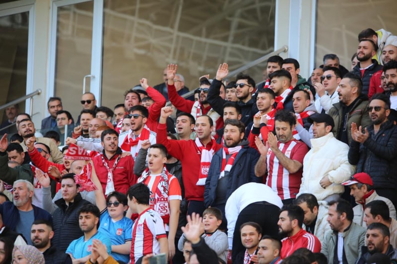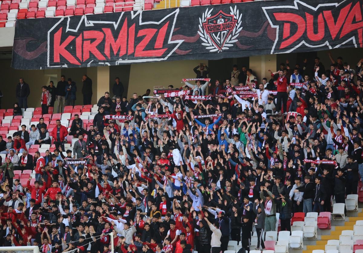 Kırmızı-beyazlı taraftarlar, 27 bin 532 kişi kapasiteli Sivas 4 Eylül Stadyumu tribünlerini büyük oranda doldurarak, önemli karşılaşmada takımlarına destek verdi.