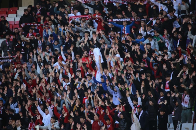 Maç öncesi stadyum çevresinde toplanan Sivaslı taraftarlar, heyecanla mücadeleyi bekledi.