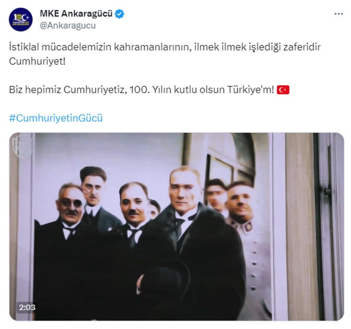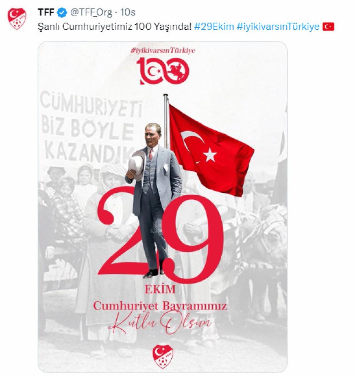 Bugün 29 Ekim 2023... Gazi Mustafa Kemal Atatürk önderliğinde bir milletin kurduğu Türkiye Cumhuriyeti bugün tam 100 yaşında!