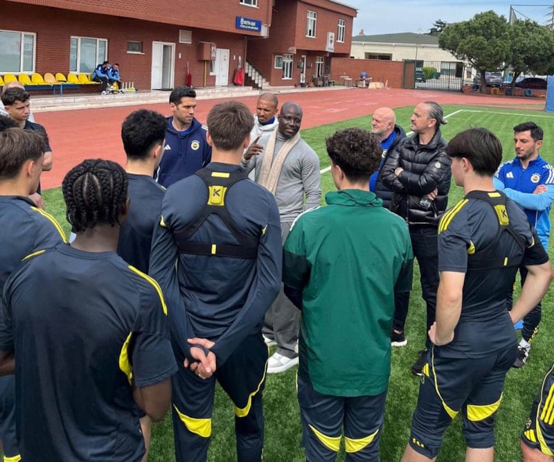 Eski Fenerbahçeli futbolcu Stephen Appiah, Fenerbahçe Futbol Akademisi'nde genç sporcularla bir araya geldi.
