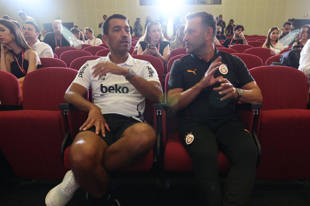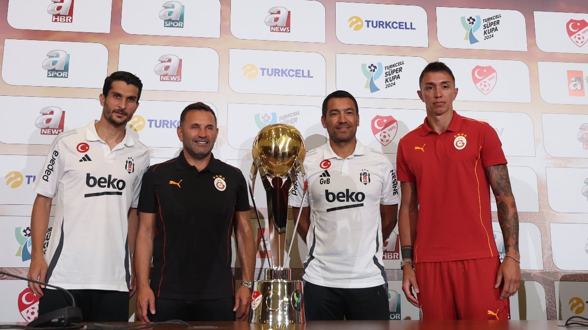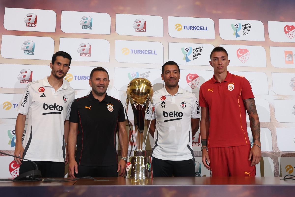 Basın toplantısına Galatasaray'dan teknik direktör Okan Buruk ve Fernando Muslera, Beşiktaş'tan teknik direktör Giovanni van Bronckhorst ile Necip Uysal katıldı.