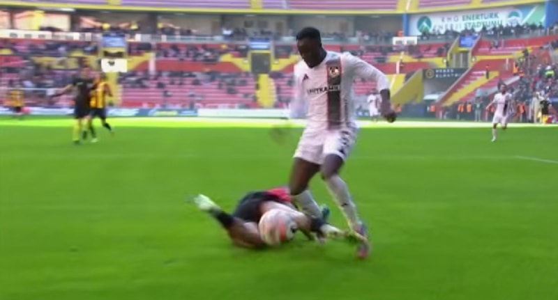 Kayserispor - Gaziantep FK müsabakasının 35. dakikasında konuk ekip atağında Gaziantepli oyuncular penaltı bekledi ve hakem Mehmet Türkmen autu göstererek, penaltı olmadığını işaret etti.