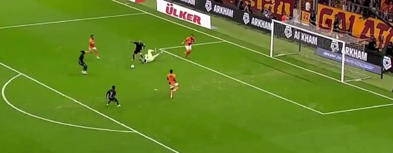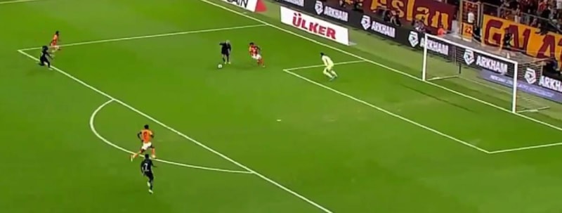 Savunma arkasına sarkan Rui Pedro ceza sahası içi sol çaprazında topu sağa çekerek Fernando Muslera'yı geçmek isterken yerde kaldı.